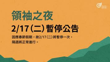 因逢春節假期, 02/17(二)《領袖之夜》將暫停一次,請弟兄姊妹留意時間調整。 活動將於02/24(二)晚間 19:30恢復正常舉行。 ▍活動時間調整 暫停時間|02/17(二)19:30 恢復時間|02/24(二)19:30 預祝大家新年快樂!